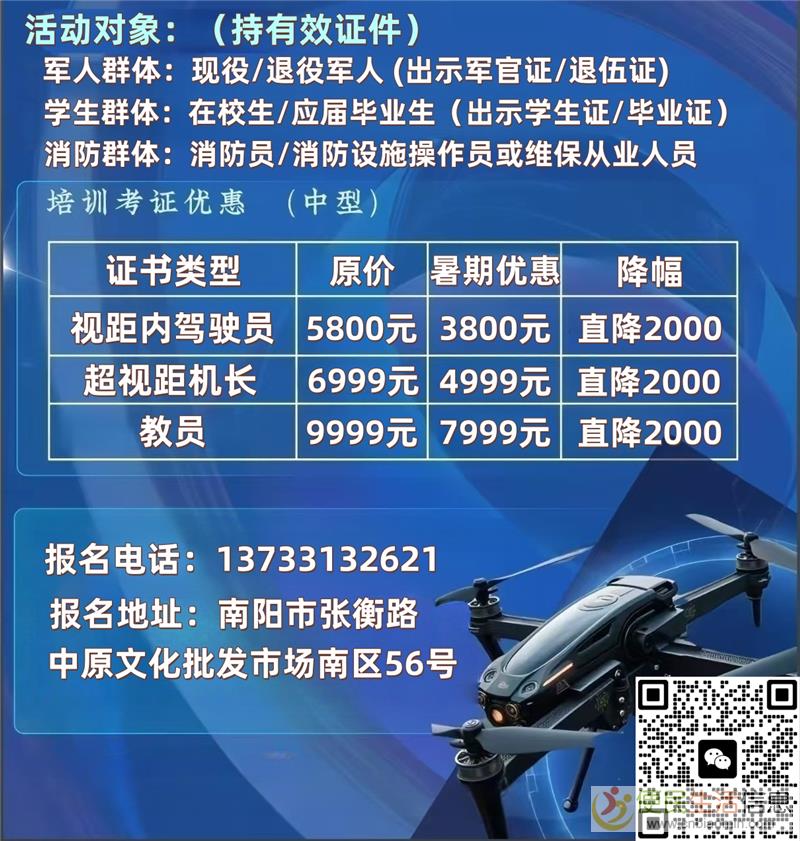 南阳CAAC无人机培训,从报名到考试20-25天,一对一教学,拿证后推荐就业,